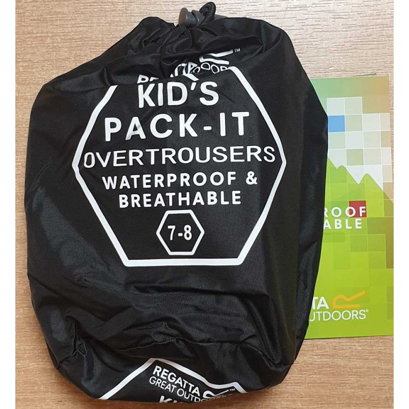 Regatta waterproof and Breathable overtrousers. Packs into a handy bag with press stud at bottom of leg. 2 pocket accses slits.