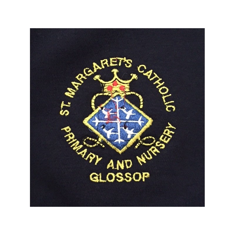 Navy Cardigan with St Margarets logo embroidered on the left side of chest, button up with two pockets at the front. Cotton / polyester mix, machine washable.