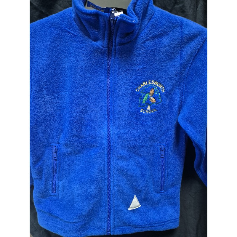 Royal blue full zip Fleece with Charlesworth Logo. Featuring two zip pockets, elasticated cuffs and reflective safety feature.